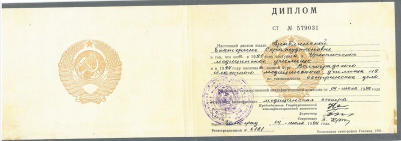 1994-1995 - ММУ психоневрологический диспансер №4. Медсестра.